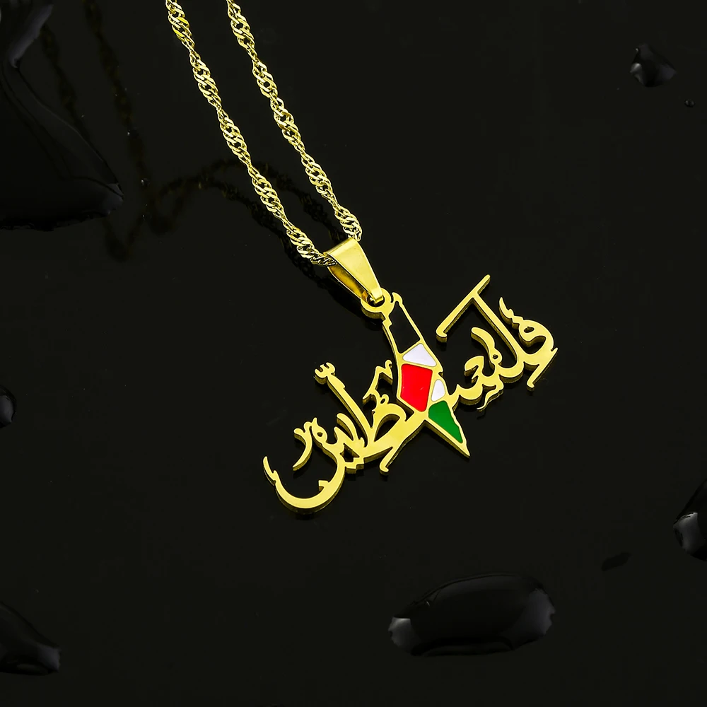 Palestine Map Flag Necklace – Stainless Steel Pendant